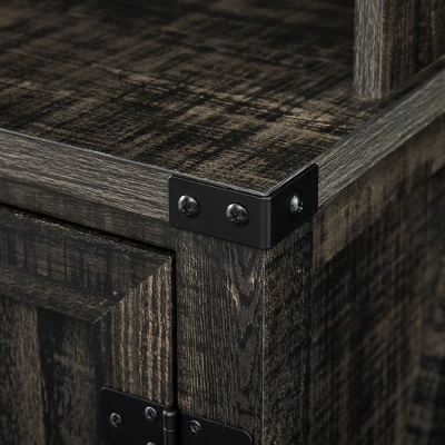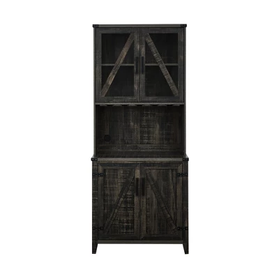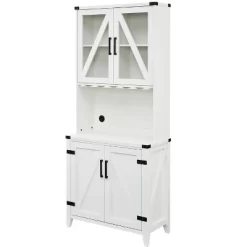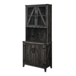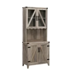 Add a stylish, versatile unit to your home with the addition of a Bar Cabinet. The bottom of the unit has double door cabinetry with knobs on each door, allowing easy access for entry. The top cabinet has two glass doors with two wood shelves to house your favorite wine glasses along with other household essentials that need a home. The bottom cabinet has two bran look wood doors with 2 shelves for any other items you need to store. The open shelf is great to showcase any additional beverage bottle, your favorite decor, coffee station and even a microwave. There are endless possibilities with this unit to maximize your current space, regardless of its size. The bar cabinet gives ample storage while simultaneously keeping everything contained and out of sight.