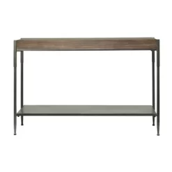 - •Natural wood brown finish highlights this console table with dark gray frame