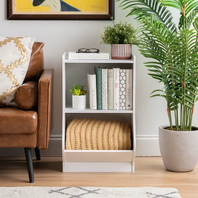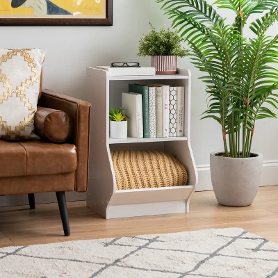 Use this shelf organizer to store books, DVDs, toys, pet accessories, bags and more in your living room, play room, bedroom, closet, or other parts of your home. Bottom shelf cubby design is low to the ground making it easily accessible to anyone; angled lip prevents anything from slipping out of the cubby. Strong design allows for storage of your belongings with ease. Simple design makes it easy to put together and set-up.