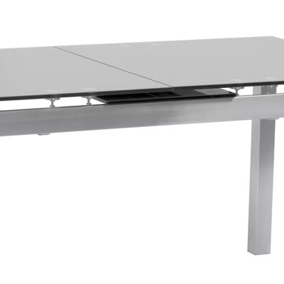 The Armen Living Ivan contemporary extendable dining table is a wonderful addition to the modern dining room. The gray tempered glass top is coupled with an elegant brushed stainless-steel base that gives the Ivan a unique and original flair. The table can be extended by simply pulling at one end, no additional storage necessary, the table extension is tucked under the tabletop. The versatility and style of this table make it a standout piece of furniture for your dining room space. Product Dimensions: 63-79″W x 35″D x 30″H