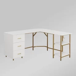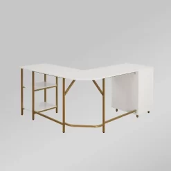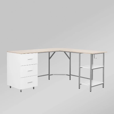 L Shape Home Office Two-Tone Desk With Storage – Techni Mobili