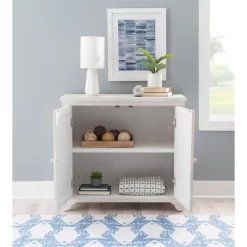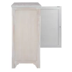 Every day feels like a beach day with this relaxed coastal cabinet. Inspired by timeworn cottages on the shore and sandy towels, the whitewashed finish creates a breezy sun kissed aesthetic sure to lighten things up in your home. The acacia wood framing is covered in a protective lacquer finish and outfitted with carbon steel plated hinges and screws to ensure long term durability, while the sturdy MDF shelf supports up to 50 lbs. This piece arrives fully assembled, ready for your sunroom, bathroom, bedroom or beyond!