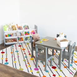 It makes a great toy box storage alternative, helping keep your little one’s room clean and organized while at the same time teaching sorting and cognitive skills. The stylish colorway make this the perfect organizational solution for bedrooms, playrooms and more. Made with a sturdy engineered wood construction frame and steel shelving rods, each level can hold up to 30 pounds. Some assembly is required and all hardware is included.