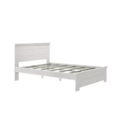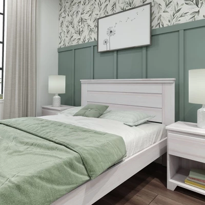 - Shiplap inspired panel headboard creates an elegant, rustic style