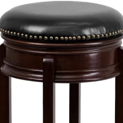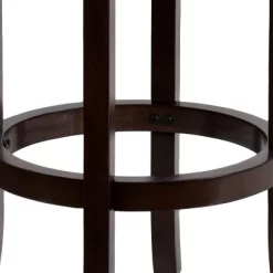 Freedom of movement and classical features combine in this well-designed bar height stool. The backless design adds versatility in placement along with an agile style, while the faux leather upholstery provides enduring comfort. The intricate wooden framework deserves the brass nail accent trim which punctuates this stools Victorian era vibe. Protective floor glides are evidence of the fact that this stool was thoughtfully crafted for the modern age. Additional Features: Circular Footrest Adds Support, Brass Nail Trim, Protective Floor Glides, Item Size: 17″W x 17″D x 30″H; Seat Size: 17″W x 17″D x 30″H