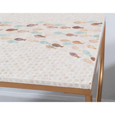- Capiz shell mosaic in multi-color Mother of Pearl Inlay tabletop finish