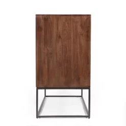 INDUSTRIAL BOHO: For a carefree, unconventional look and a variety of textures for your interior space, our cabinet brings an earthy boho touch to your decor by combining handcrafted mango wood with a faux wicker texture and an iron frame.