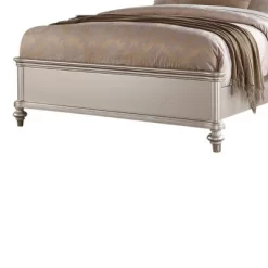 Dreamy and magical its a royal affair with silver. Constructed in pine wood and faux leather its a captivating bed. The wonderfully designed bed frame with an upholstered button tufted headboard with crystal like shine in silver faux leather and fine nail head trim is dazzling sleep treat. It also ensures sturdiness by its pretty bun feet supports. Experience the magical presence of this antique silver bed frame for an added royal feel. It does not include any other featured product other than a Bed Frame. Bed Frame Dimensions: HB 58″H FB 20″H
