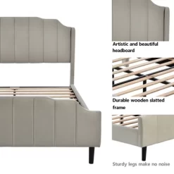 - [No Box Spring is required] This queen-sized bed frame comes with many wooden slats, and as such this bed doesn’t require a box spring. The mattress is not included.