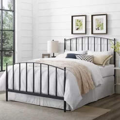 Give your bedroom a classic look and feel with our Whitney bedset. Featuring a slight arch on the headboard and footboard along with tapered legs, the Whitney puts a new spin on the classic metal bedset by creating clean, modern lines on an otherwise traditional silhouette. The textured charcoal powder coating on the steel frame and oval finials help to complete the look, making it a stylish addition to any bedroom.