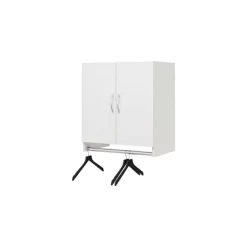 Convert unused wall space into storage with the Basin Wall Storage Cabinet with Hanging Rod. Made of laminated MDF and particleboard, this sturdy storage solution is sure to get you organized. Use the concealed storage of the Wall Cabinet for laundry essentials and cleaning supplies, and hang your cares out to dry on the convenient built in clothing rod below. The interior of each of the 2 Cabinets features 1 adjustable and 1 fixed shelf. The EZ Hang system makes hanging the Wall Cabinet quick and easy. Simply attach and level the support bar on the wall and hook the Wall Cabinet on for a sturdy and level hang on the first try. Use this piece as a stand-alone item, or combine it with additional Basin storage items to create the perfect storage solution for your home. The Wall Cabinet ships flat to your door and requires assembly. Two adults are recommended to assemble.