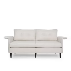Add a statement piece to your interior space that will inspire a fresh feel and bring comfort to your living room. Featuring unique thin cushioned armrests and simple button tufting, our sophisticated three-seater sofa is the ideal addition for any living room. This takes a gorgeous classic look and brings an impressive modern twist, easily anchoring your decor in an atmosphere of contemporary elegance. This sofa is finished with beautifully tapered round wood legs, bringing stunning style and outstanding durability to your home.