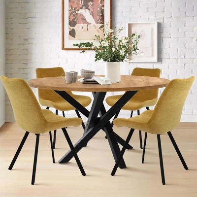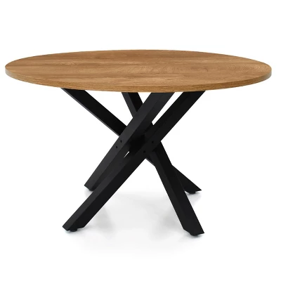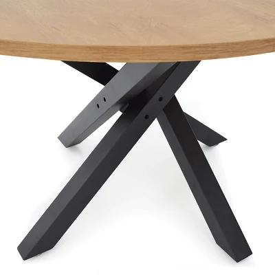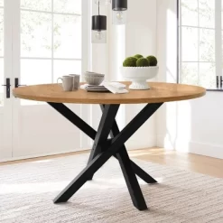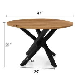 We spent months to develop this structure of leg. SOLIDLY built with heavy metal, the intricately WOVEN legs make it a work of art. It is the focal point in your dining room.46″ x 46” is comfortably seat 4 or even 5 guests. PEDESTAL base allows for maximum leg room and more comfort!The high-grade MANUFACTURED WOOD is foild with RICH GRAIN malemine, it offers a WARM and INVITING nature that welcomes a spot for a modern dining.Any issue please contact Guest Services:[email protected].