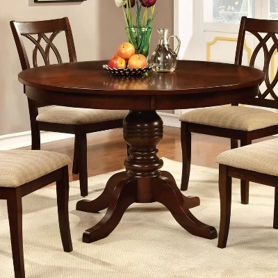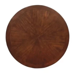 Homes: Inside + Out Ladister Round Table Top with Pedestal Dining Table in Brown Cherry delivers a fresh and simple look suitable for casual dining with friends and family. Its pedestal support features elegant lines to enhance the table’s striking appearance. Homes: Inside + Out Ladister Round Table Top with Pedestal Dining Table in Brown Cherry lends warm and inviting style and features a smaller, space-saving design to easily fit in small dining rooms or kitchen nooks.