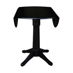 Give your kitchen an elegant and timeless statement with this Sandon Round Dual Drop Leaf Pedestal Table Black – International Concepts. This solid wood table brings a classic design with simple shapes for a traditional and romantic feel. The table features a lovely dual drop leaf pedestal. Complete your space by pairing it with complementing chairs and a cozy area rug for the perfect breakfast nook or dining room.
