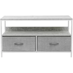 - TV TABLE STAND WITH DRAWERS ā Style meets function with our dresser style stand complete with a tabletop, middle shelf, and (2) storage drawers ā Pairs beautifully with the Sorbus Foldable Furniture Collection