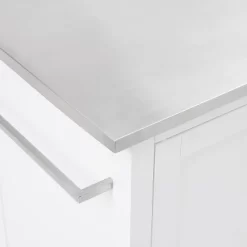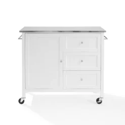 Expand your kitchen storage in style with the Soren Kitchen Island/Cart. Featuring a large cabinet with an adjustable shelf, plus three full-extension drawers, this kitchen island holds everything from cookware and utensils to small appliances and linens. Showcasing shaker-style cabinetry and a beautiful countertop, your kitchen workspace will be the envy of the neighbors. With optional caster wheels, this kitchen essential can be used as a stationary island or mobile kitchen cart.