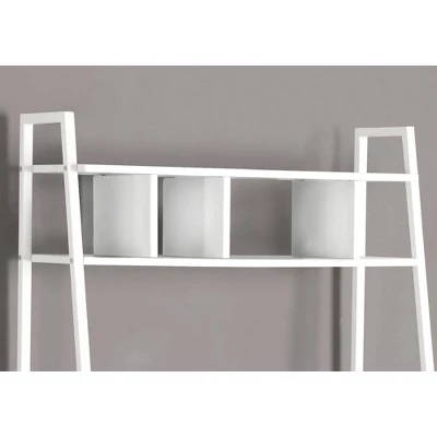 This simple, minimalist computer desk offers a compact work space that is ideal for apartments, condos and other small spaces. With clean lines in a bold white finish, this desk will blend easily with your home decor. The top ladder style shelves can be used to display pictures and decorative pieces while the ample surface area provides enough room for a laptop and other office essentials. Add this convenient piece to your home for a functional workstation, where ample storage options, excellent functional features, and sophisticated style come together.