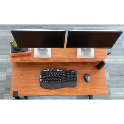 - Two-level design places monitors, keyboard, and mouse at ergonomic, comfortable heights, whether sitting or standing