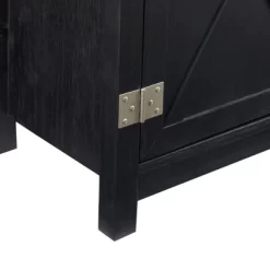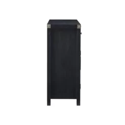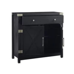 Add style and extra storage to your home with the Stanton Accent Chest. This 2-door accent chest features an X-shaped design on each door with a large front drawer that offers ample storage space and versatility, for your space. Magnetic door catches help keep the doors secure and the removable shelf inside helps to accommodate larger household items. The exposed hardware flaunts a brushed steel patina finish that creates a striking contrast against the dark wood finish to enhance the transitional design. Assembly is required.