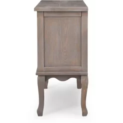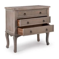 The practical function and refined styling of this attractive storage cabinet makes it a welcome addition to any living room, entryway, or home office. Three spacious drawers offer plenty of space to keep items tucked away yet close at hand. The traditional design style gets a fresh update with a light gray washed wood finish for a truly timeless look. The smooth curves of carved wood legs create an elegant focal point, accented by antique-inspired ring pulls.