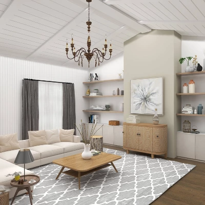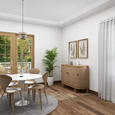 - •Decorative accent cabinet with doors highlights a light brown finish with slight whitewashing