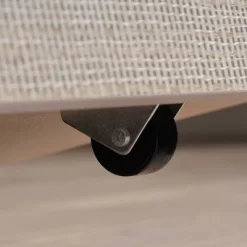 - Convenient under bed storage features two drawers with casters for easy mobility.