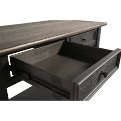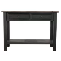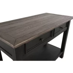 Whether your style is cozy cottage, classic farmhouse or vintage inspired, you can put an end to your quest for the ultimate sofa or console table. The character-rich piece you’ve been searching for is yours for the taking at a price to put you at ease. Shabby chic with a hint of down home country, this wonderfully versatile sofa table, console table or entry table with textured black finish is all the talk of today’s design world. Wood grain shows through the weathered gray-brown top in all of its earthy pleasure. Framed drawer is adorned with lovely traditional hardware. Signature Design by Ashley is a registered trademark of Ashley Furniture Industries, Inc.