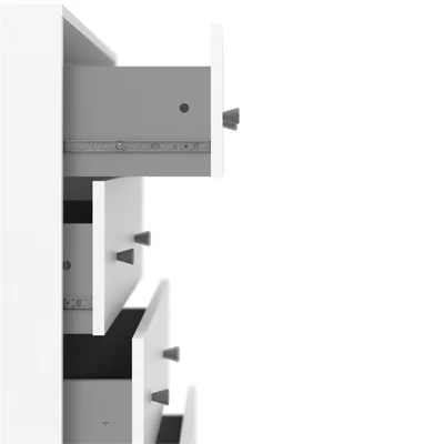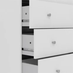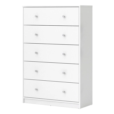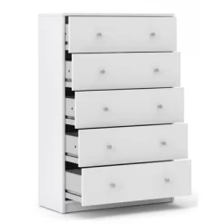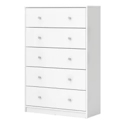 Organize your wardrobe with Portland 5 Drawer Chest. The simple, sophisticated design features five drawers, clean lines and a smooth, white finish. Equally suited for the kid’s room, master bedroom or even entry way, the Portland 5 Drawer Chest is a versatile piece of furniture, offering roomy storage for all your organizational needs. The Portland 5 Drawer Chest is traditional Danish design and produced with a fade resistant foil surface, which is easy to clean.Features : 3D Interactive assembly through BILT: Instructions for this product are available through the free BILT app Scan the QR code to find a revolutionary way to assemble & install product with voice, text, & interactive animated images.Contemporary style fits any decorFive drawers provide ample storageHigh drawer sidesPlastic pewter colored drawer handles offer a nice accentDrawers retract smoothly on metal glidesProduct is shipped in 1 boxSuggested number of people for assembly is 2Made from engineered woodMade in DenmarkScandinavian look and designIncludes assembly manual and all necessary hardware and fasteners. Components are pre-drilled and pre-cut ready for easy assembly!Specifications : Product Dimensions : 42.56″ H x 28.5″ W x 11.73″ DTarget Audience : Adult (18 Years and Up)Number of Drawers : 5Furniture Subtype : Vertical DressersTarget Audience : All AgesNumber of Drawers : 5Surface Material : WoodFurniture Subtype : Vertical DressersProduct Weight : 80.25 lbsProduct Color : White