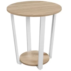 This stylish multipurpose side table puts userās needs first. Of a rustic brown round shape wooden/metal end table design, it is easy to fit almost all the space. With magazines, chips, laptops, glasses, handbags, tea/coffee cups at hand on the table, you are free to enjoy everyday couch time, bedtime, patio leisure or entryway convenience. An attractive addition to your living room, bedroom, patio/balcony and hallway. Make cleaning a breeze. The overall dimension is: 19.7 x 19.7 x 22.2āā (L x W x H); Top Platform: 19.7āā (Dia.); Bottom Platform: 13.8āā; Distance between top and bottom platforms: 19.7āā. Unit of measure: inch. Please see image for exact measurements.