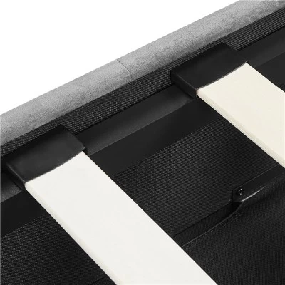 - 【Simple & Modern】Low-profile frame opens up any room. Modern design with a simple color fits various types of home decor. The striped pattern of the side panel combined upholstered bed frame enriches your room with a classic and chic look.