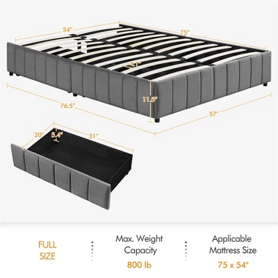 - This upholstered bed frame with Drawers would be right at home in a five-star hotel – and in your bedroom, of course. The no-fixed headboard design can customize your desirable headboard according to your style, and the frame is crafted from sturdy metal and wood slats. Available in your choice of neutral hues, this bed just might inspire you to redo the entire room around it. We love how the drawer-storage design provides a large amount of space as you organize or hide daily essentials before falling asleep. Best of all, this bed doesn’t require a box spring, so it’s ready to support your mattress right away.